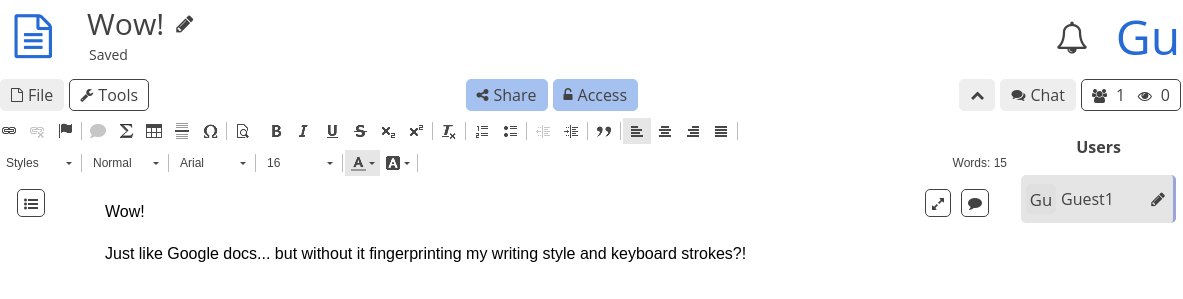 For cloud docs, we’re using open source CryptPad, which lets you collaborate with others in a web browser similar to Google docs. The big difference between this and NextCloud, is that it allows for encryption. Also CryptPad is faster to load than NextCloud and more lightweight on computer resources, which is going to save you money on the server.